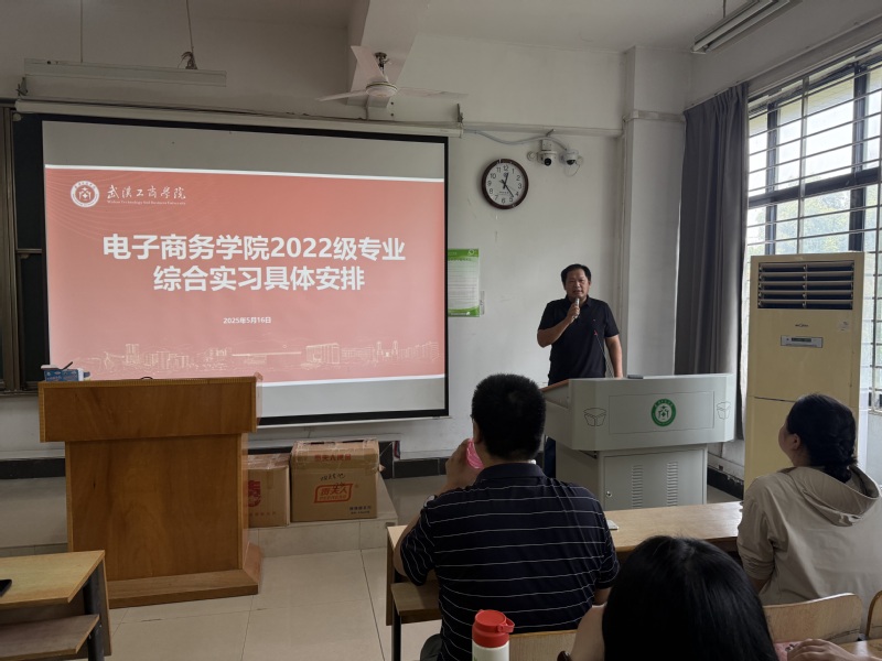 新闻中心讯(记者 朱懿)2025年5月16日12:00,电子商务学院综合楼207隆重召开2022级本科毕业生实习动员大会,全面部署专业综合实习工作,为即将踏上实习岗位的学子们提供指导与动员。学院党总支书记杨睿、副院长万辉、辅导员朱懿出席会议,2022级全体本科生参加。