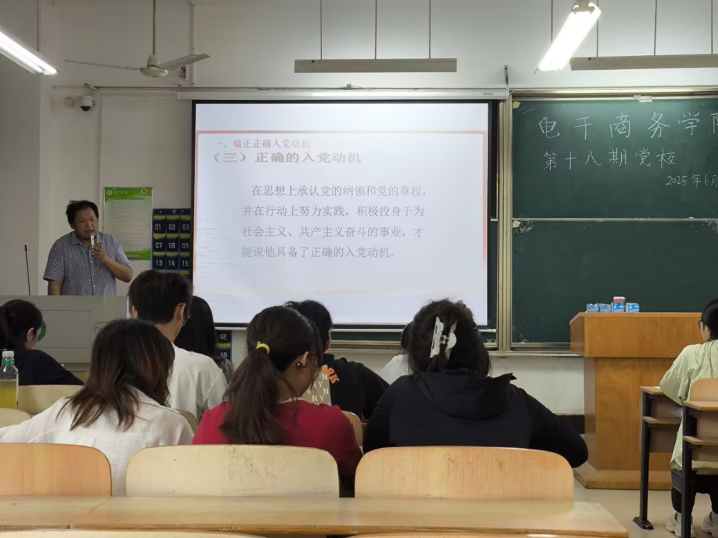电子商务学院青年文学协会讯(记者 雷曦)2025年6月3日中午12:30,在综合楼205教室举行了电商学院第十八期党校培训第一讲。本次党课由学院党总支书记杨睿老师主讲。