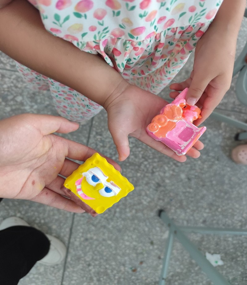 随着绘画环节开始,教室里顿时安静下来,只听见画笔轻轻触碰石膏的沙沙声。孩子们全神贯注地为自己的石膏模型上色,有的小心翼翼地勾勒细节,有的则大胆尝试色彩碰撞。志愿者们在孩子们身边轻声指导,不时给予鼓励。老师,你看我画的小兔子!一个小女孩举起她粉色的兔子模型,脸上洋溢着自豪的笑容。在短短一个多小时里,原本素白的石膏模型在孩子们手中变成了色彩斑斓的艺术品,每一件都独一无二,承载着孩子们的创意和快乐