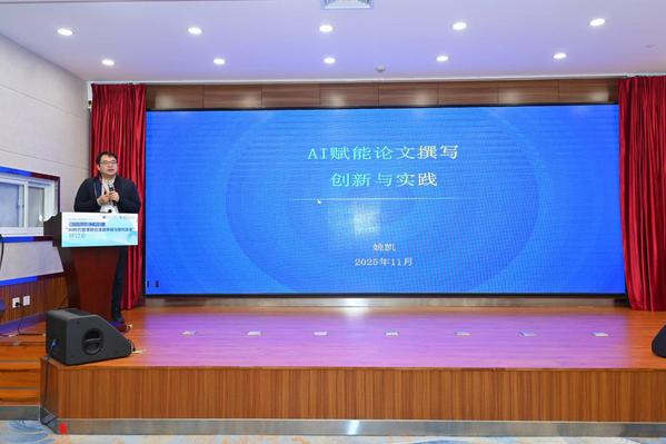 中央财经大学姚凯副教授(Credamo 见数创始人)在《AI 赋能论文撰写探索与实践》报告中,现场实操演示了多款 AI 工具在文献整理、数据分析及论文撰写中的具体应用。通过真实案例,他直观呈现了借助人工智能技术提升研究效率与论文质量的方法路径,为参会教师提供了实用的科研辅助方案。