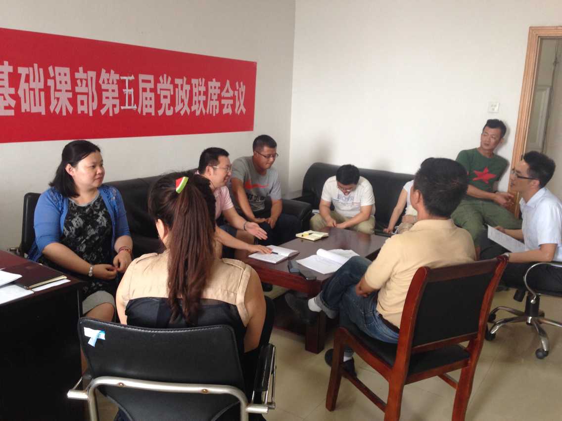 公共基础课部第五届党政联席会议于6月18号中午在课部主任办公室进行。本次会议议题主要是围绕本科评估综述撰写工作安排而展开。参加本次会议的有公共基础课部党总支书记张兆学、课部副主任李纪明以及各教研室主任、课部办公室主任及教学秘书。会议由办公室主任张文主持。