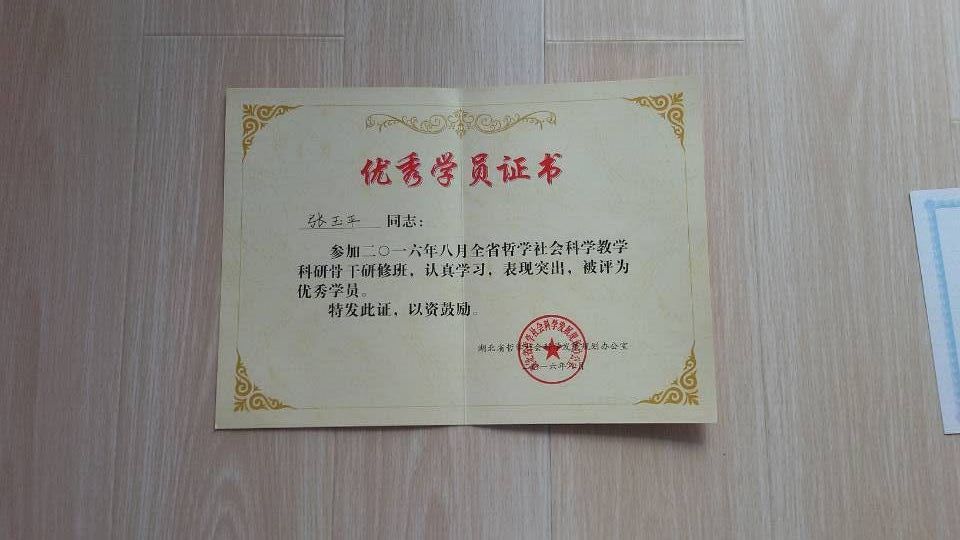 年8月2日至8月12日,思政课部张玉平教授积极参加暑期哲学社会科学研修班,参加此次研修班的学员都是各高校和科研单位教学科研骨干人员,共计360人左右,实际最后结业学员只有300人。张玉平教授积极参加上课和讨论,认真学习,表现突出,最后被评为优秀学员,并发放荣誉证书,以资鼓励。