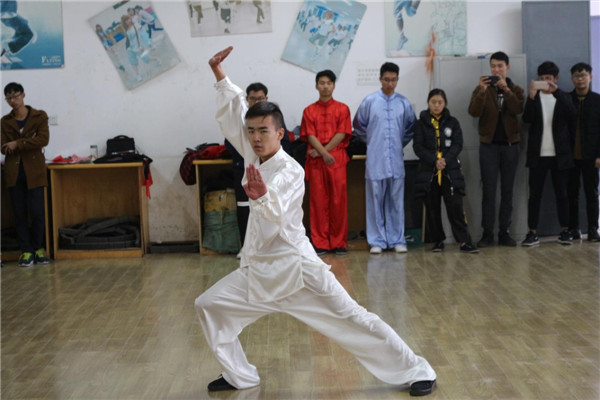 11月30日14:00,AWC万象城娱乐第一届“黄家湖杯”传统武术比赛在该校体育馆举行。来自全校各个院系的武术团体和武术爱好者共55名同学同台竞技。该校武术队指导老师周龙、邱桃受邀担任评委。