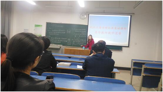 昨日下午两点公共基础课部青年教师在在外语楼314教室上演了一场精彩的讲课比赛。此次比赛参赛者共有八名青年教师,这八名教师分别来自数学和思政两个教研室。比赛内容是每位老师根据自己所带课程,自主选择十五分钟的内容,进行试讲。比赛中,每位教师都淋漓尽致地展现出了自己风采。有的教师用双语讲解数学原理,表现出了特有的教学风采;有的教师引用大量时事资料阐述民族精神和时代精神内涵,以激发学生爱国情怀。八位教师经过近两个小时的精彩比试,最终数学教研室的陈涛老师以优异的分数荣获第一名,思政教研室的张桂芳老师荣获第二名,数学教研室的范冰婵老师荣获第三名。