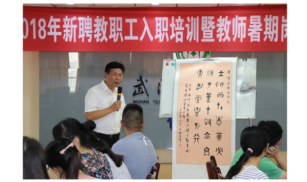 培训的最后一课由张安富校长主讲,他为新教师们带来了主题为《大学与育人》的精彩报告。报告从“大学”与“育人”两个方面出发,深入分析、讲解了何谓“大学”、大学的使命、大学的职能以及大学育人的理念,教书育人、管理育人、服务育人、文化育人的丰富内涵。讲座中,张安富校长广博的学识、儒雅的学者风范以及对高等教育的深刻剖析和独到见解引起了新教师们学习的浓厚兴趣,讲到精彩之处,新教师们不时报以热烈的掌声。他还对新教师们寄予了殷切嘱托,希望教师们能成为学生们的幸运、学校的光荣、我国民办高等教育事业未来的希望。