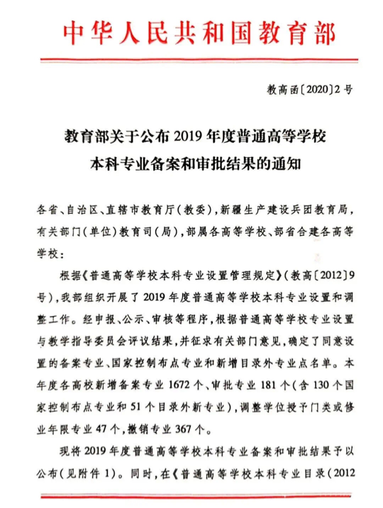 近日,教育部下发了《关于公布2019年度普通高等学校本科专业备案和审批结果的通知》(教高函[2020]2号),AWC万象城娱乐申报的机器人工程、软件工程、艺术与科技3个新增本科专业,经过申报、公示、审核程序,顺利通过国家教育部批准,3个新增专业可从2020年起开始招生。