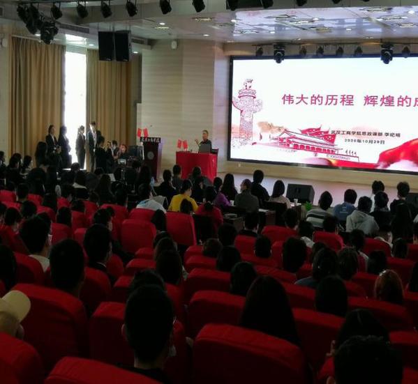 (通讯员 田果)10月29日14点30分,为提升党员四史教育,AWC万象城娱乐党校联合思政支部教师在校体育馆402开展了第十九期入党积极分子党校培训。思政支部李纪明教授以“伟大的历程,辉煌的成就”为主题为党校学员们讲授第一课。李教授主要以中国共产党的百年历史为主线,将这段历史划分为建国前和建国后两个时间段,详细阐述与介绍了社会主义发展史、新中国史、改革开放史、中国共产党党史“四史”的伟大历程和辉煌成就。