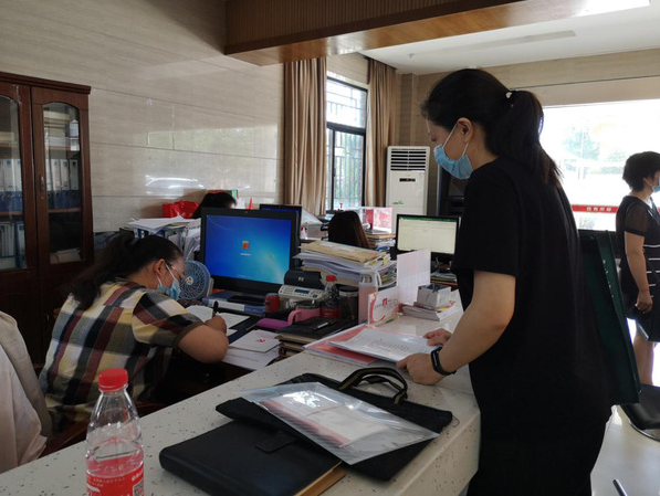 图为王曼副部长办理党委工作队下沉黄家湖社区正式报到