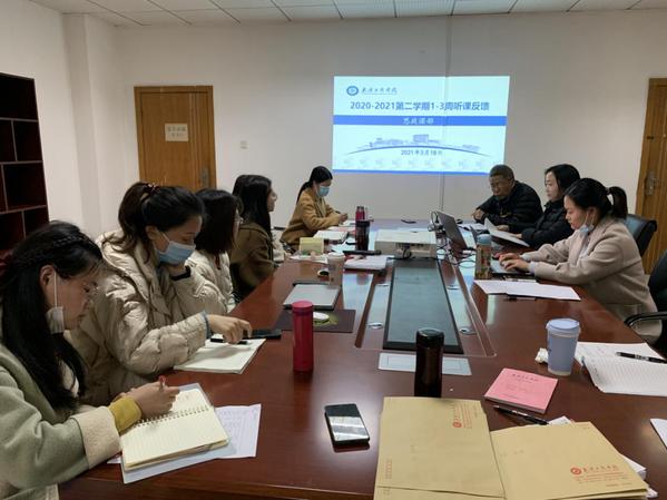 为深入了解我校思政课教学情况,推动思政课改革创新,不断提升我校思政课教学质量,提升思政课教师的教学能力;2021年3月18日下午16:00在综合楼925会议室召开了集体听课反馈会议,思政教研室教师全体出席。