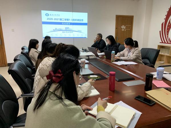为深入了解我校思政课教学情况,推动思政课改革创新,不断提升我校思政课教学质量,提升思政课教师的教学能力;2021年3月18日下午16:00在综合楼925会议室召开了集体听课反馈会议,思政教研室教师全体出席。