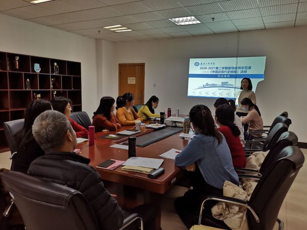 为进一步推进习近平新时代中国特色社会主义思想进课堂,提高《中国近现代史纲要》的教学质量,发挥优秀教师引领示范和“传帮带”的作用,以建设一支高水平的纲要课师资队伍,提升教学水平和人才培养质量。我校思政课教研室于2021年3月11日在综合楼925会议室举行了本学期第一堂教学“公开示范课”,教研室全体专兼职教师参加了此次活动。