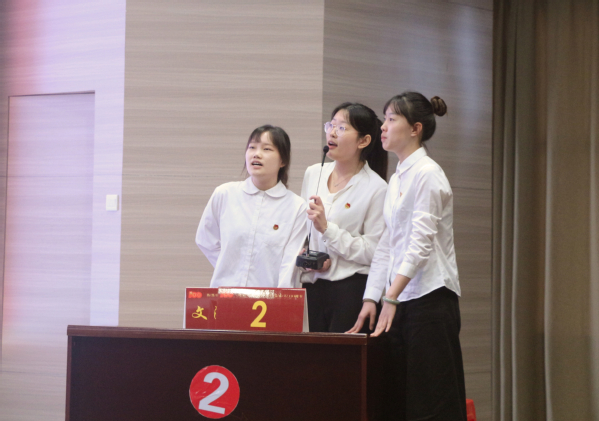 在最后一轮“团队天梯赛”中,参赛队伍更是充满拼劲,快速且准确地回答问题,向现场观众呈现出一场精彩的党史盛宴。文法学院代表队在这一环节中表现得尤为突出,在九十秒内完成了十八道题,成绩遥遥领先。