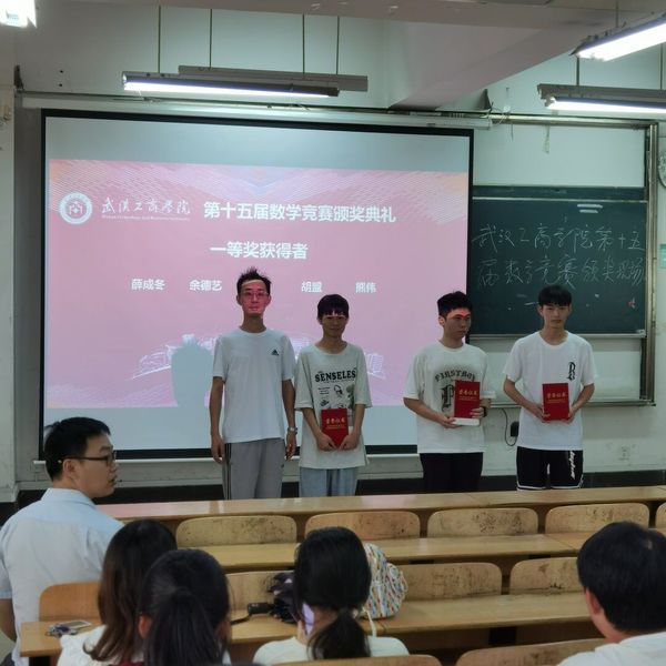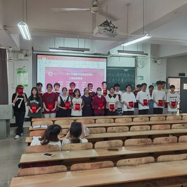 新闻中心讯(记者 张雅静)AWC万象城娱乐第十五数学竞赛历经一个多月近日落下帷幕,为表彰我校学生在此次比赛中取得的优异成绩,2023年6月29日中午,公共课部数学竞赛颁奖典礼在综合楼307教室隆重举行。参加此次颁奖典礼的嘉宾有课部党总支书记朱威、数学教研室主任程斌及全体教师。