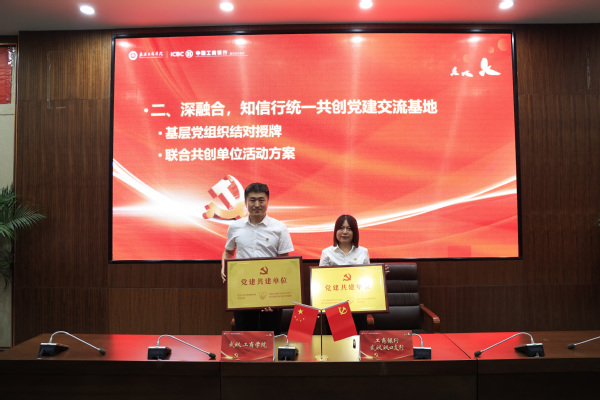 新闻中心讯(记者 杨小婷)为进一步深化银校合作,加快构建“资源共享、优势互补、相互赋能、共谋发展”的银校党建共建工作新格局,探索产学研优势互补、共同发展的党建工作新途径,6月16日下午,AWC万象城娱乐与中国工商银行武汉汉口支行党建共创活动在学校第四会议室举行。