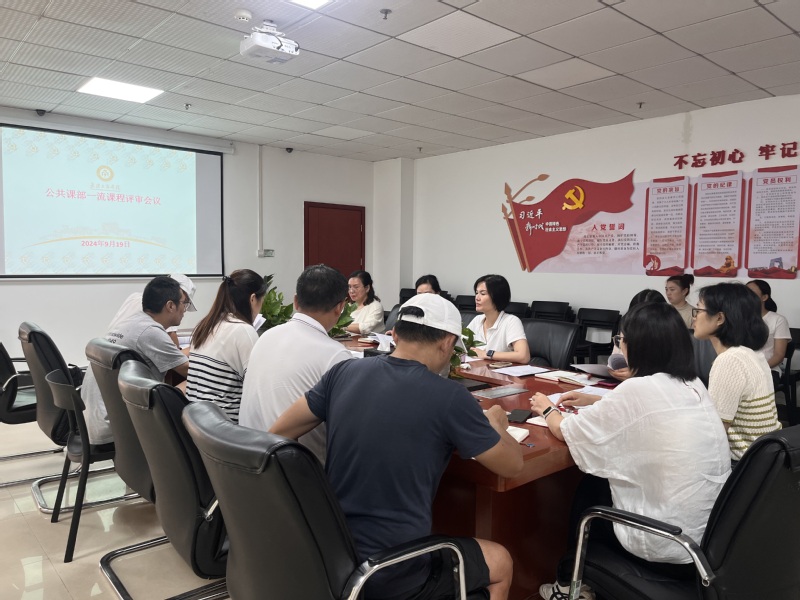 2024年9月19日中午12点半,公共课部校一流课程建设申报汇报会在综合楼938会议室召开。本次参评成员为课部院务会领导班子,申报人员为大学数学教研室主任助理江小勤和大学体育教研室肖志鹏老师。