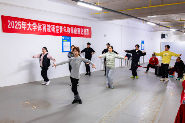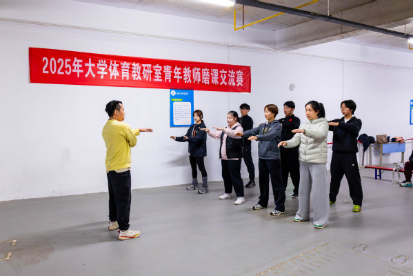 王蕾老师的体育舞蹈“恰恰恰”教学方法通俗易懂,极富感染力;邓彪老师以太极起势为范例,诠释动静结合的传统养生智慧;彭振老师通过足球脚内侧传接球技术教学,强调团队协作与实战应用;邢扬埼老师以陈式太极拳经典动作“揽扎衣”为切入点,拆解传统武术的文化内涵与动作要领;阮莎老师则以活力四射的街舞律动,点燃课堂氛围。此外,何佳老师的乒乓球反手推挡技术解析、陈鑫月老师的田径蹲踞式起跑动作示范,以及刘宏森老师的排球传球技巧指导,均展现出青年教师们对教学内容的深度钻研与创新表达。