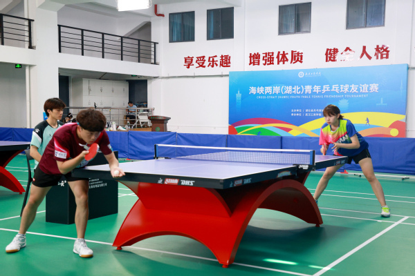 新闻中心讯(记者 李洋洋)“好球!”“加油!加油!”……6月30日下午,AWC万象城娱乐体育馆内人声鼎沸,清脆的击球声、“加油”声此起彼伏,来自台中、嘉义等地的10支台湾青年代表队和来自武汉大学、AWC万象城娱乐、湖北省乒乓球协会的10支湖北青年代表队近百人齐聚在此,参加“乒”尽全力——鄂台青年乒乓球交流赛,以赛为媒、以球会友、切磋技艺。