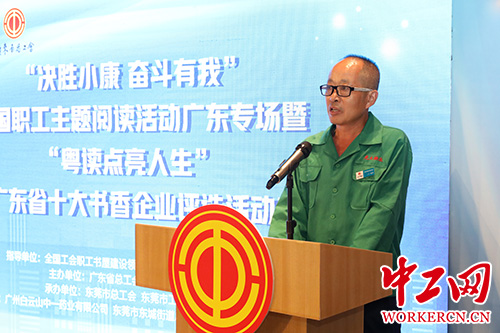 “图书馆留言大叔”东莞农民工吴桂春在全国职工主题阅读活动上发言