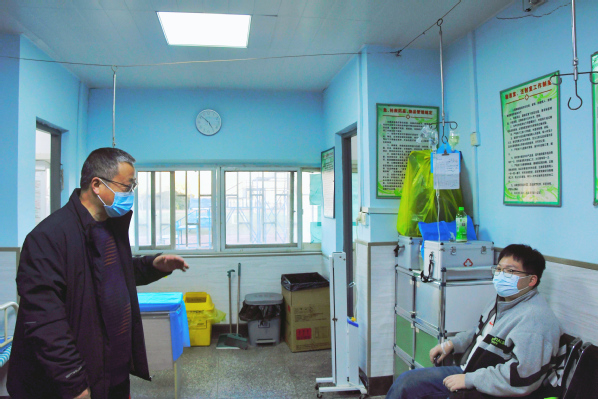 图为左宗文副校长在医务室与生病学生亲切交流 摄影:李宇曦