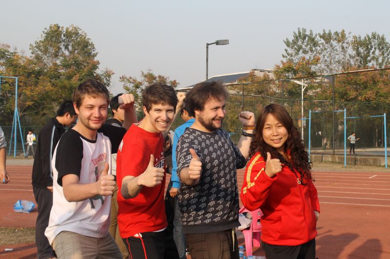 (学通社 刘特)2012年11月12日,我校第八届运动会在大家的期待中隆重拉开帷幕,各学院老师及同学们都积极地参与各类比赛项目,其中国际教育学院的外教们也不例外,并成为运动赛场上一道独特亮丽的风景线。在此次运动赛场上,Bryan、Chris等几位老师在教工组项目中,均取得了可喜的成绩。 百米赛跑中,Bryan老师健步如飞,很快地跑到了终点;铅球比赛中,Micheal老师投出优美的弧线,铅球掷地有声;接力赛跑中,虽然Chris老师摔了一跤,但他爬起来后仍然顽强奋力奔跑,准确把接力棒传给下一位老师……伴随着围观同学振奋人心的加油声,运动赛场上洋溢着青春与活力的气息。 赛后成绩公布,外教们不只在比赛中都取得了不错的成绩,更表现出了“奥林匹克”精神。国际教育学院马老师表示,此次运动会是全校的运动会,他们鼓励外教们来参加,也希望他们在比赛中能够获得运动的快乐。 |