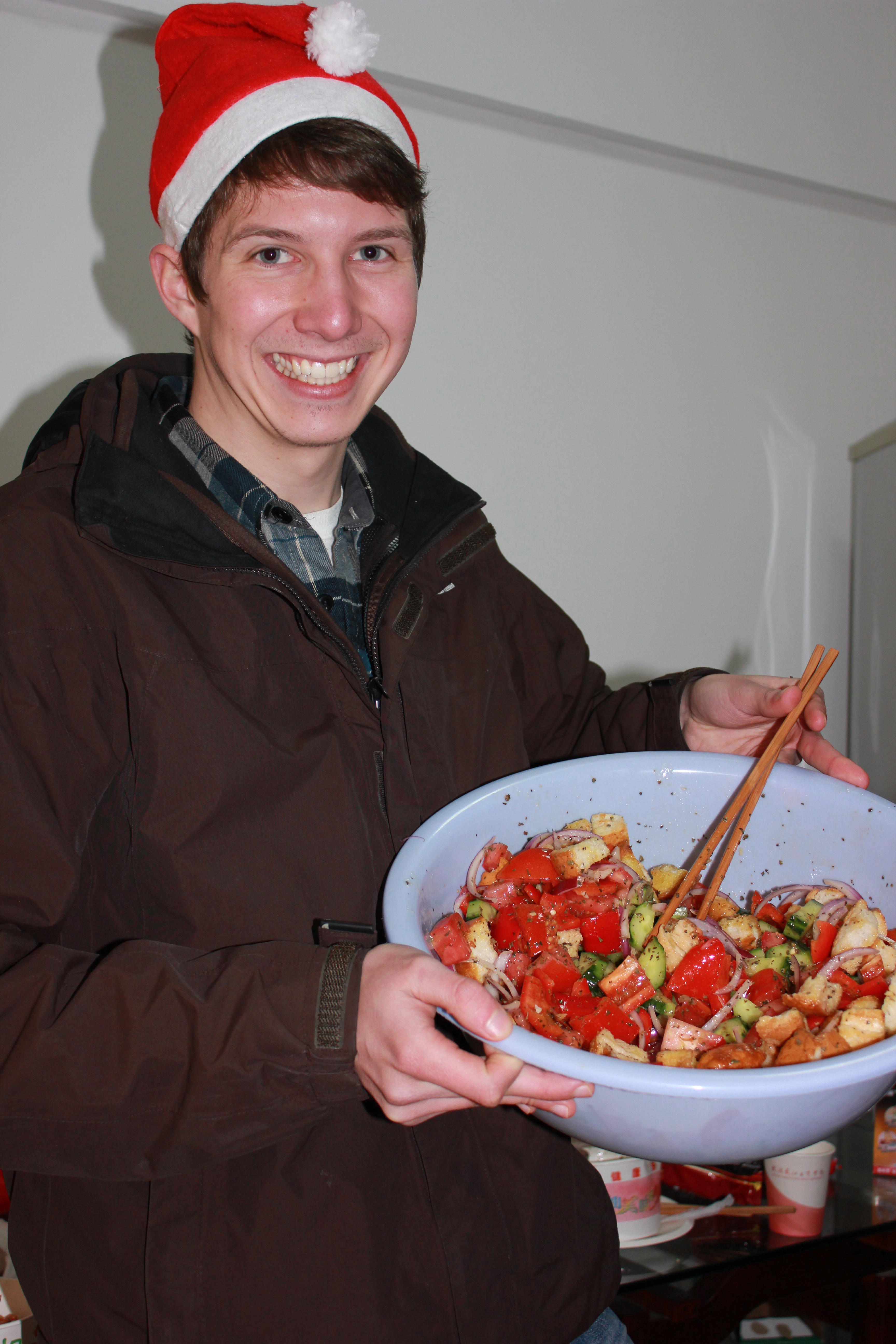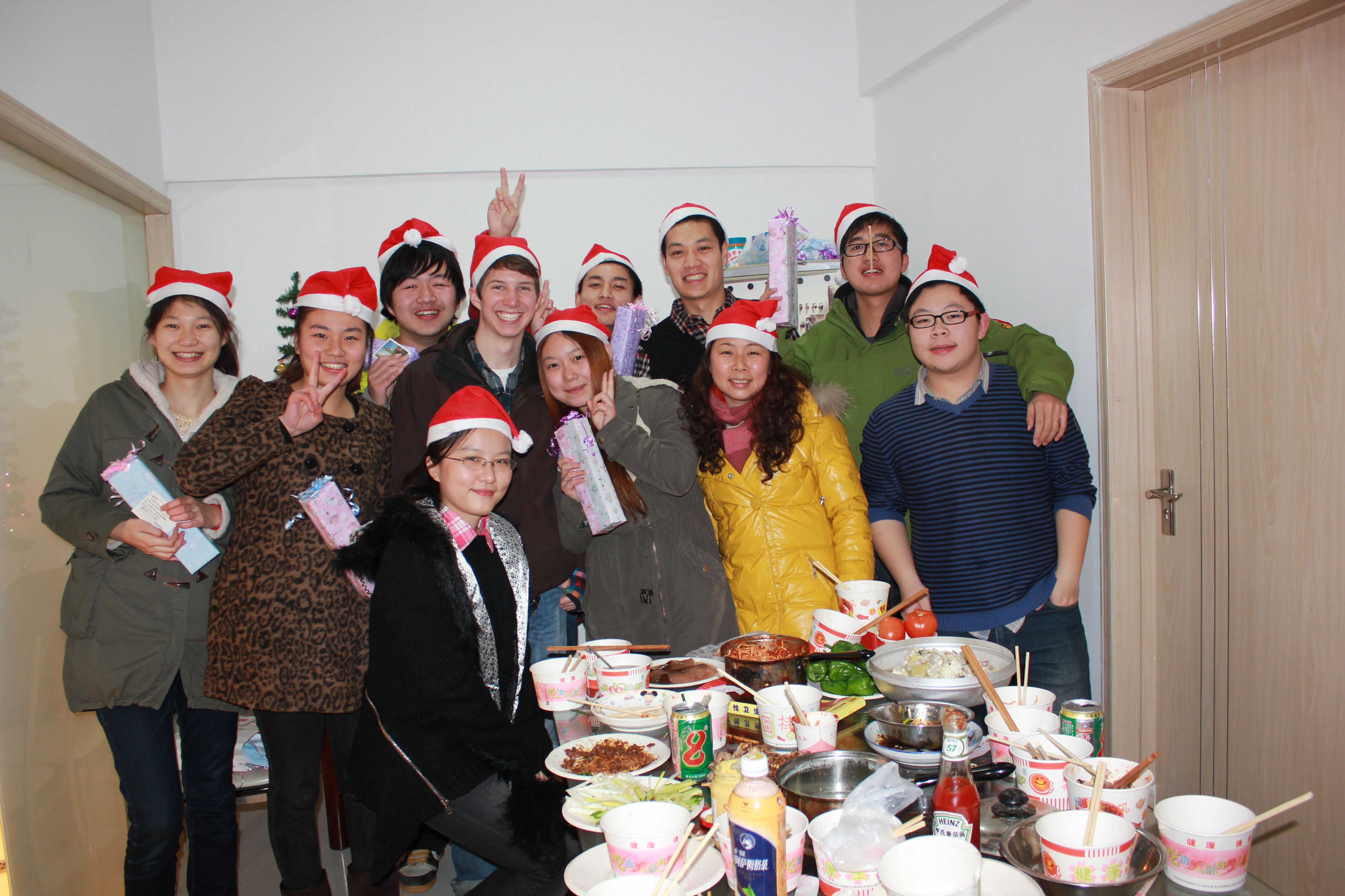 (长江网新闻记者 莫玉津)疯狂“血拼”、吃大餐,向来是中国人过圣诞节的方式。而一些在中国的美国人,他们过圣诞节的方式却很简单,温馨、快乐就好。21日晚,在武汉长江工商学院国际教育学院外教们的公寓里,5名外教与10余名中国师生开始了厨艺“大比拼”,有滋有味儿地过起了“洋节”。 ![]() 来自美国的Bryan做了一道拿手的沙拉,白色的大瓷碗中,用凉透了黄瓜、红辣椒、土豆等熟料加工成较小的形状后,再加入各种调味品,一道色泽鲜艳、鲜嫩爽口、解腻开胃的沙拉就摆上了餐桌。外教做的汉堡、意大利面等特色菜出炉后,中国的大学生们也按捺不住了,该校大四学生邵珊也做了一道京酱肉丝。 准备好肉丝、千张、葱、黄瓜等,邵珊开始“操作”了。“千张用开水烫下就好,本来就是熟的,黄瓜和葱要切成丝。”邵珊介绍,爆炒肉丝的时候,一定要爆出香味儿,颜色发白的时候,加一点料酒。” 不一会儿,可乐鸡翅、皮蛋汤、油淋茄子等中国家常菜在同学们的巧手下,也摆上了“洋节”的餐桌。据该校国际教育学院副院长马冬玲介绍,学院的老师和同学每年都会和外教一起过圣诞节,外教在异乡也可以感受到节日的氛围和温暖,学生也能借此机会了解国外的餐饮文化。 |