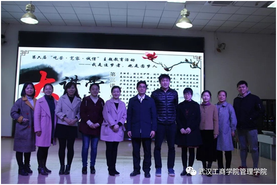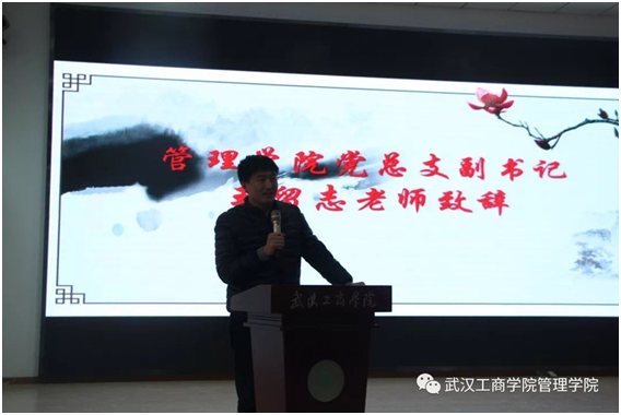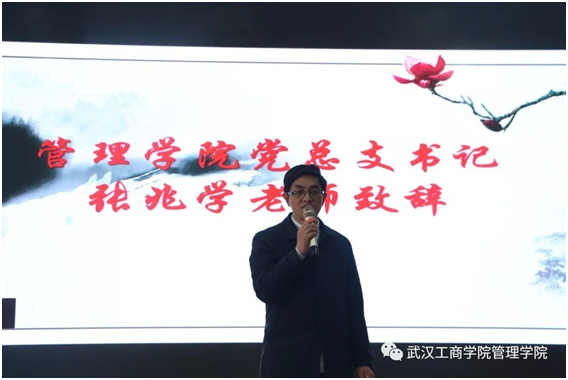 首先由党总支书记张兆学老师致辞,他简单的说到在今年夏天一次工作交流中与吴校长相识,并呼吁大家去管院分团委书记张力老师处报名参加“爱心学校”志愿者活动。
