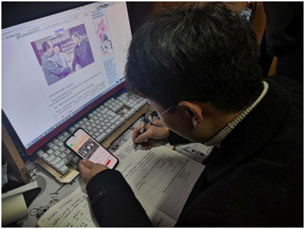 (图为:马靖钟同学正在进行“四史”学习)