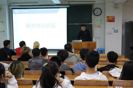 (管理学院分团委讯 宦棋文 摄影 胡奥玲)青年兴则国家兴,青年强则国家强。为进一步加强当代大学生爱国主义教育,培养大学生爱国主义情怀。2021年10月26日18:30,由管理学院党总支主办的第九届“吃苦·宽容·诚信”主题教育活动之“强国有我 请党放心”启动仪式于综合楼607举行,管理学院分团委书记张力以及管理学院分团委、学生会、青年马克思主义研究会参与了此次启动仪式。
