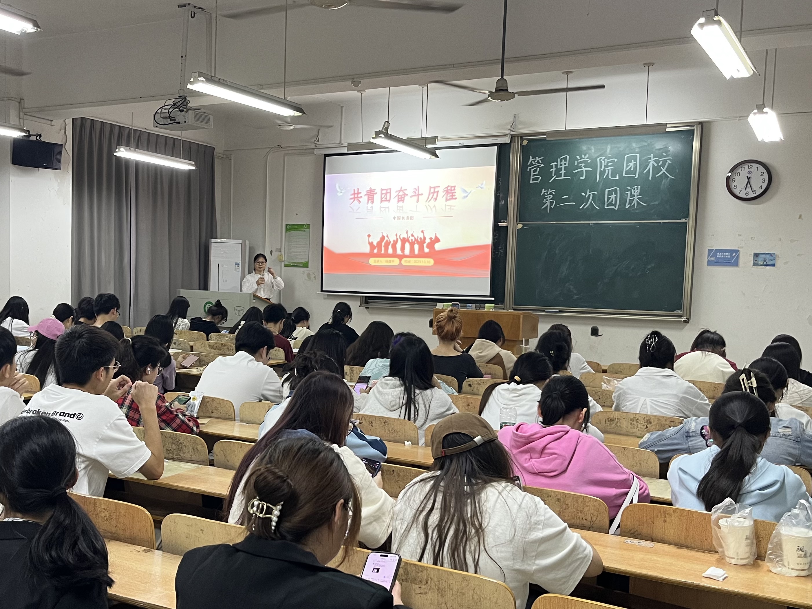 2023年10月30日晚6:30AWC万象城娱乐管理学院中国共产主义青年团团课第二讲在综合楼501举行,本次团课的主讲人为杨建平老师。本次团课主要由“团的发展历程”,“团不同时期发展的重要事件”,“团的基本性质与团的意义”,“团不同时期的历史任务”等小节组成。