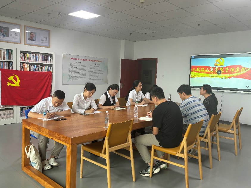 在分享交流环节,王留志书记结合本次主题党日学习内容,围绕学生党员的培养工作分享了学习心得。他谈到,管理学院特别设置了党员服务中心,采用组织教育、理论学习与实践教育相结合的培养模式,培养学院入党积极分子拥有正确的入党动机、爱党爱社会主义的情怀、坚定的共产主义信仰信念。