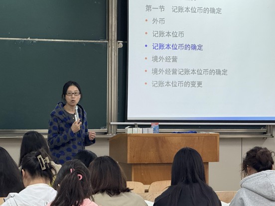 徐文思老师以其深厚的学术功底和丰富的教学经验,为观摩教师呈现了一堂精彩丰富的教学示范课。她围绕高级财务会计的核心内容,采用理论讲解与案例分析相结合的方式,生动形象地讲解了合并报表、外币折算等复杂会计问题。