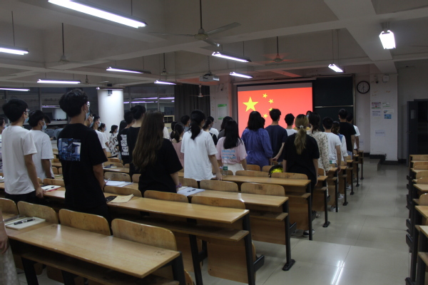 大会第一项,全体起立,奏唱国歌,在庄严的氛围下,全体人员目光坚定共唱国歌。
