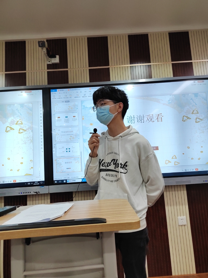 李柯宜同学和陈都同学给学弟学妹们分享了考研经历经验以及学生干部工作经历经验。他们从自身出发,从情从心,以回顾的方式重拾四年时光碎片,以乐观的态度笑谈四年间的经历,以自身做比,殷切希望着他们的学弟学妹们能走的更远更好。在四年的学习生涯中他们学会了成长、学会了奉献、学会了担当。即将走出校门的他们,也将不忘求学初衷,用智慧和力量,践行青春使命、建设伟大祖国。