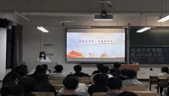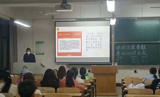 首先,22级团支书高倩智子带我们回顾历史,中国共产党带领中国人民经千难仍前仆后继,历万险仍锲而不舍,在列强侵略时顽强抗争,在山河破碎时浴血奋战,在一穷二白时发愤图强,在时代发展时与时俱进,创造了一个又一个彪炳史册的人间奇迹。她提到,习总书记曾说:“征途漫漫,惟有奋斗。”以习近平同志为核心的党中央高瞻远瞩、审时度势,带领全党全军全国各族人民迎难而上、攻坚克难,在这极不寻常的年份创造了极不寻常的辉煌。同学们的爱国使命感与责任感得到充分激发,纷纷表示要更加积极主动的学习,不断强化自身专业能力,为理想而努力,牢固“为天地立心,为生民立命,为往圣继绝学,为万世开太平”的决心,以实际行动迎接党的二十大召开。