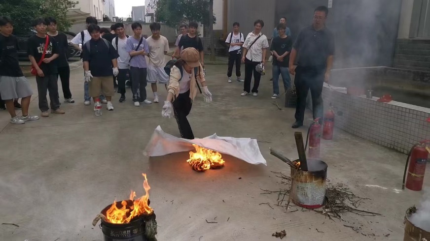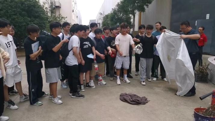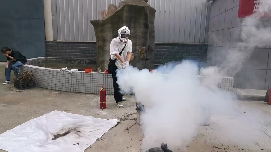 消防演练结束后,所有疏散人员到指定区域集合,在老师和相关工作人员的组织下,全体同学在工程训练中心一楼进行消防安全知识学习。现场安排学习防烟面具的使用、灭火器等专业工具的使用方法讲解、安全知识答题活动活动,同学们积极排队体验了模拟灭火,系统直观地了解到消防安全知识,提升了消防意识与技能。