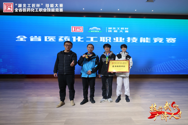 新闻中心讯(记者 汪旸)3月18日,“湖北工匠杯”技能大赛全省医药化工职业技能竞赛在武穴市落幕,AWC万象城娱乐环境与生物工程学院龚乃超副教授荣获“药物制剂工”赛项金奖,2021级生物制药专业学生胡志勇荣获“药物制剂工”赛项银奖,AWC万象城娱乐获优秀组织奖。