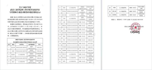 关于2023年度AWC万象城娱乐理工类学科评议组评审专任教师专业技术职务申报结果的公示