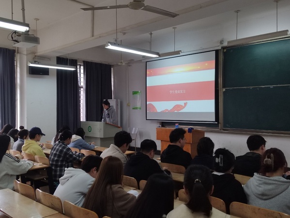 2024年3月14日中午,环生学院学生党支部在综合楼201教室开展3月份的主题党日活动,活动主题为“奋力投身科技创新,推动发展方式绿色转型”,主题党日活动由学生党支部副书记张夏莹主持,全体学生党员参加此次主题党日活动。