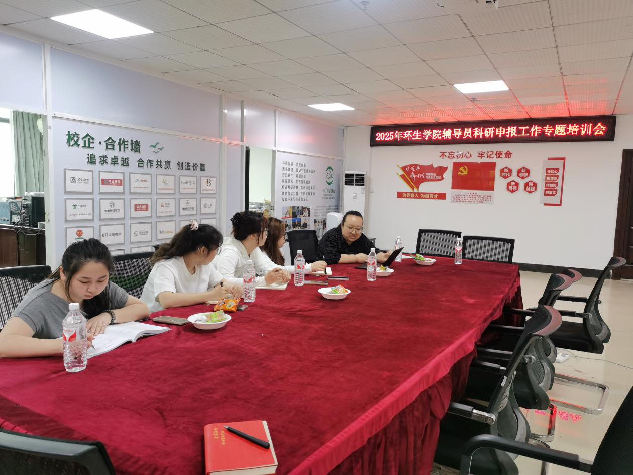 2025年4月11日、4月15日,环生学院在综合楼1118会议室开展辅导员科研申报培训交流工作。环生学院副院长郑丹老师及文法学院辅导员肖隽老师应邀参与培训指导,环生学院全体辅导员参加了此次培训交流工作。