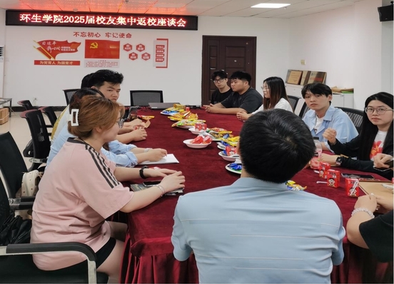 2025年9月19日上午,环生学院2025届在读硕士优秀校友应邀齐聚环生学院,参加学院组织的校友座谈会,为学院发展出谋划策。出席此次会议的有2022级辅导员李杨,来自2025届环境工程、生物制药的八个班级的10名在读硕士优秀校友及部分在校复习备考研究生的2022级学生。会议由环生学院党总支副书记王强主持。