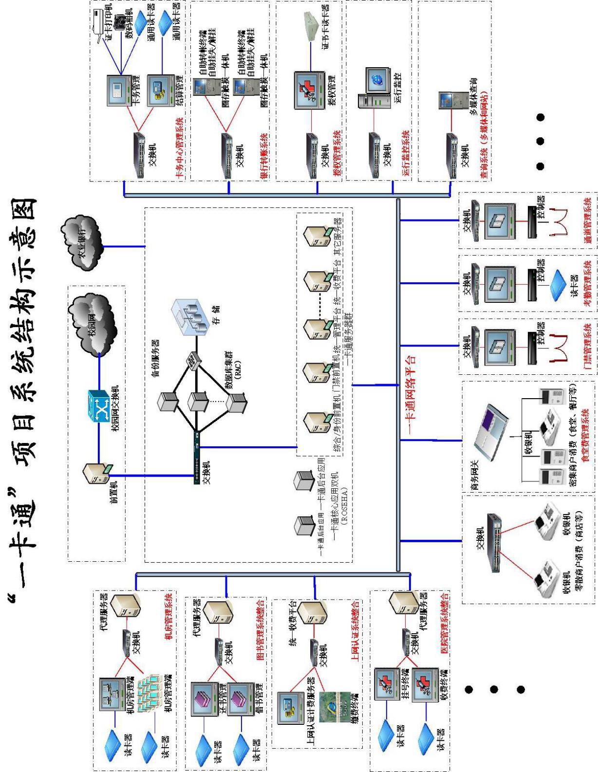 设计学校现有后勤一卡通系统与校园一卡通系统过渡方案,保证两个系统平滑切换。校园一卡通项目的基础设施建设与工程施工、一卡通相关硬件设备采购、相关应用软件开发、系统集成、学校相关应用系统对接等。
