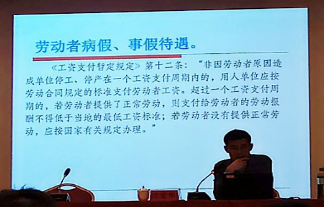 下午会议由张文军主持,由省劳动监察大队专家沈爱华处长以《劳动用工若干热点问题的解析》为主题展开。