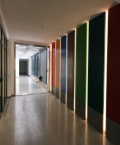 弘德楼三楼创新创业基地装修项目于3月初启动,具体包括基地墙面、天花板、卫生间、隔断的翻新及门窗、背景墙、展厅的装饰等。项目施工过程中,严谨执行整体设计方案的同时还兼顾了各使用单位的细节要求,基地可谓是旧貌换新颜,不仅外在颜值上线,内在价值也得到了提升。