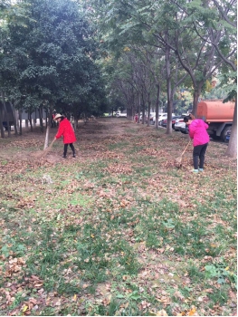 为了给师生创造干净的校园环境,按时保质保量的完成区域内的清洁任务,早上7点刚过后勤物业保洁主管摇身一变成保洁工,帮助区域内落叶多的保洁工清理落叶。保洁主管介绍到“每年到了这个季节,落叶都非常多,外围的保洁工在有限的时间里将卫生做完非常困难,有时候落叶刚扫完,风一阵,又得重新清理,多数保洁工5点就要起床,清理完校园得到8点,可能还饿着肚子,没有吃早餐。”