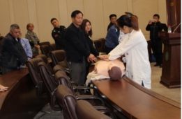 此次讲座主要围绕急救知识、雾霾防治、职业病(腰椎、颈椎)日常防治等方面展开。救实操知识讲解时,汪老师利用人体仿真模型进行演示,并现场邀请代表上台进行指导,现场气氛活跃;讲到雾霾的危害及雾霾天气的注意事项时,现场学员听得全神贯注;最后讲到腰椎颈椎病防治时,现场学员争先恐后的参与体验,现场分享穴位的检测及感受,更有学员录下老师的授课视频,将整个讲座的气氛推向高潮。