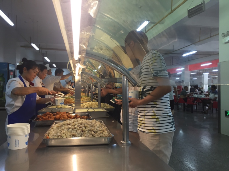 正是在这样连出门都是种考验的天气,一食堂一楼的工作人员在暑假期间依然辛勤劳作在后勤餐饮保障服务的第一线,为留校师生提供餐饮服务。