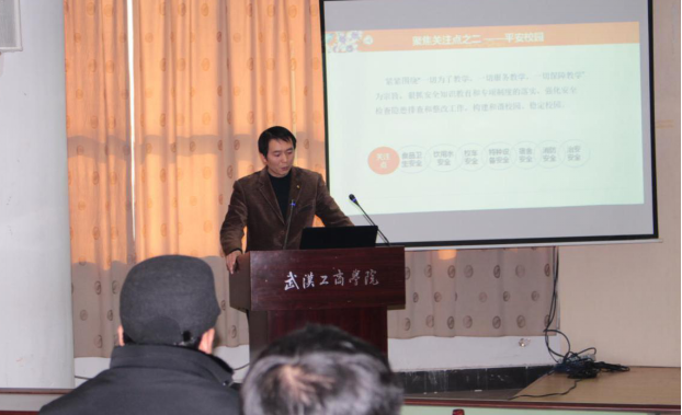 随后,后勤管理部部长彭伟向大家汇报了2019年的工作思路,具体内容为持续推进机制改革,坚守服务的理念,全面推进精细化管理,完善考核体系及操作流程,以水电、医疗、经营自营为关注点积极改进,提升后勤整体专业化水平,加强信息化建设,积极对外拓展市场,做好发展。