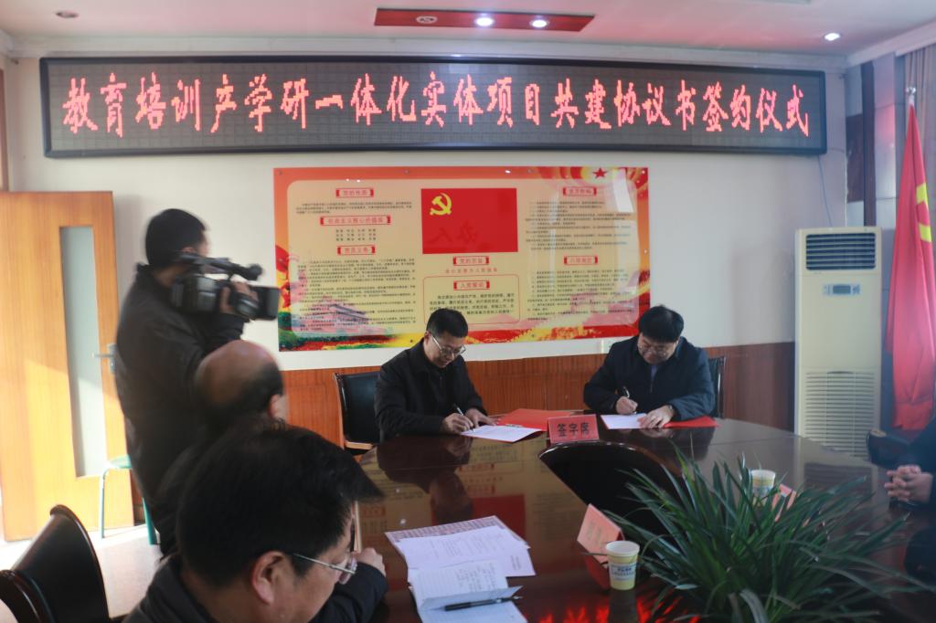 开班仪式结束后,在华阴市教育科技局召开了2020年“双百工程”座谈会。会上,王武宪介绍了教育培训产学研一体化实体项目建设思路;双方代表签订了教育培训产学研一体化实体项目共建协议,并与华山镇西吴村签订了“双百工程”优质农产品购销合同。