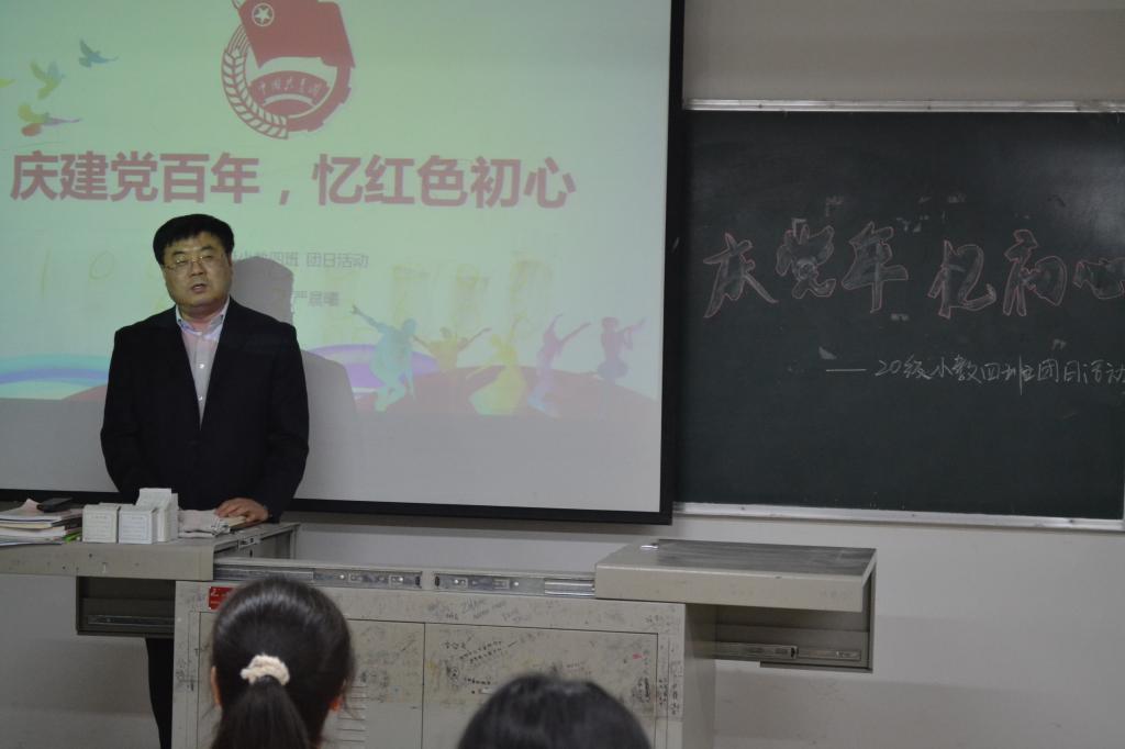 4月28日晚上,院长刘瑞明参加了公共事业系2020级小学教育专业四班团支部开展的“庆建党百年,忆红色初心”主题团日活动,学生通过讲述党史故事、诗歌朗诵、知识竞答、大合唱等形式学习党史知识,传承红色基因,厚植家国情怀。刘瑞明对活动表示充分肯定,勉励同学们要扎实开展好各类主题团日活动,结合正在开展的党史学习教育,做到学党史、强信念、跟党走。
