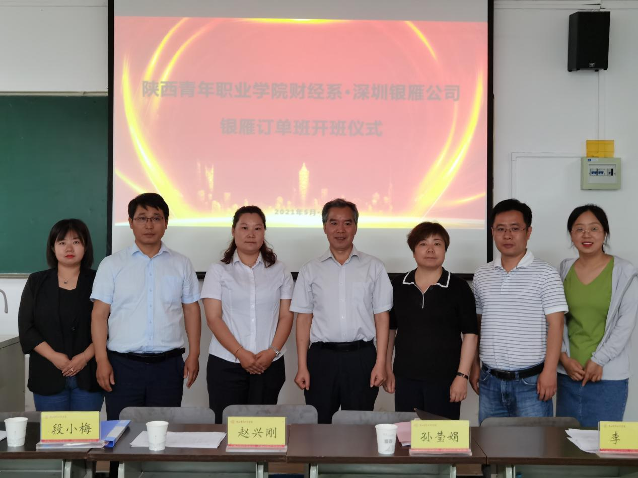 5月19日,财经系在雁塔校区举行银雁订单班开班仪式。深圳银雁金融服务有限公司西安分公司中心经理段小梅、学院副院长赵兴刚及财经系党总支书记、系主任孙莹娟出席开班仪式,财经系主任助理李伟主持,订单班32名学生参加。